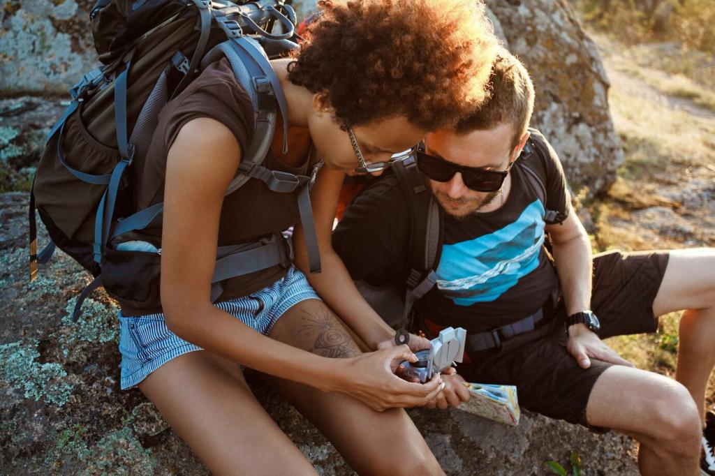 A topographic map and a simple, reliable compass weigh little but add huge confidence. Practice at home and during easy hikes. Pack them in a waterproof sleeve so sweat, rain, or spilled coffee never smudges critical contour lines.